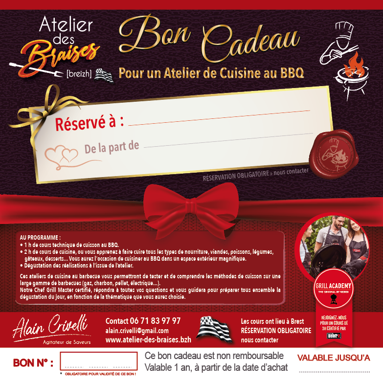🎁 Offrez un Bon Cadeau Cours de Cuisine / Barbecue